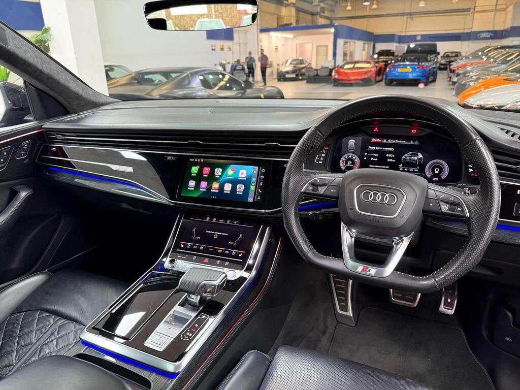 This stunning 2020 Audi Q8 3.0 TFSI V6 55 Vorsprung Tiptronic quattro, a one-owner masterpiece with just 58,000 miles. Finished in sleek Black with the exclusive Titanium Black Styling Pack and 22-inch 5-V-Spoke Star Design alloy wheels in Gloss Anthracite Black, this petrol-powered SUV delivers exhilarating 3.0L V6 performance paired with smooth 8-speed automatic Tiptronic transmission and renowned quattro all-wheel drive. The Vorsprung trim brings top-tier luxury and tech, including Adaptive Air Sport Suspension for dynamic handling, a panoramic glass sunroof, and the Extended Leather Package with heated front and outer rear seats plus Rear Bench Seat Plus for ultimate comfort. This black beauty combines bold SUV presence, refined power, and cutting-edge features—perfect for discerning drivers seeking luxury without compromise.