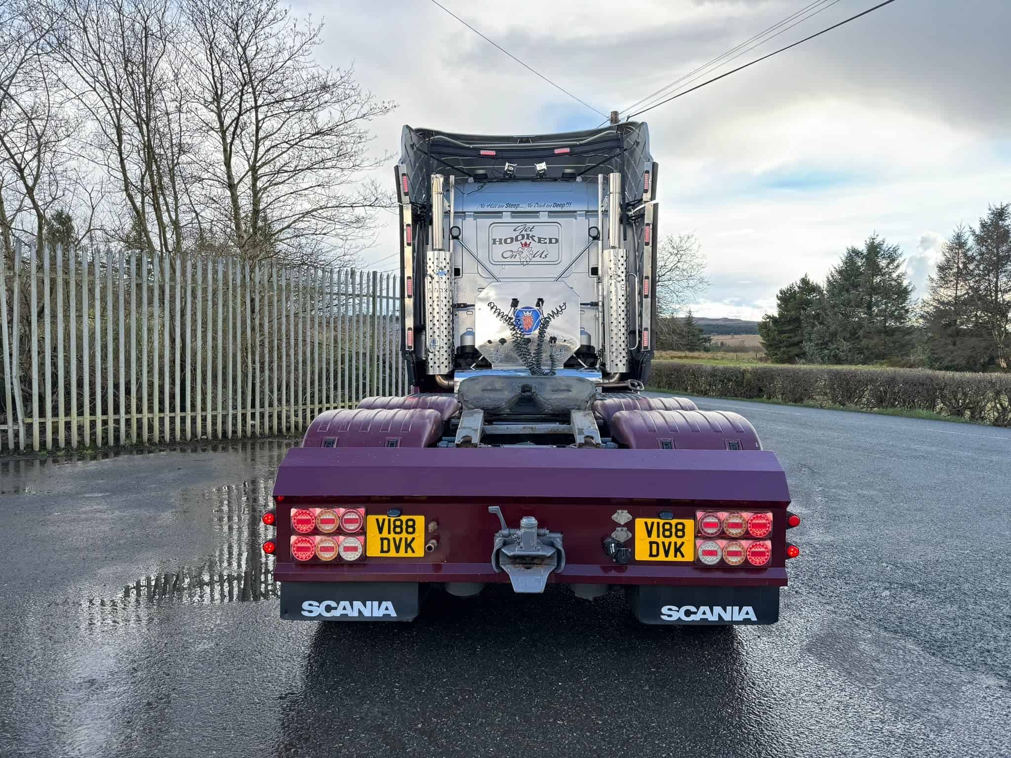 - Twin stainless-steel exhausts, beacons, custom rear bumper