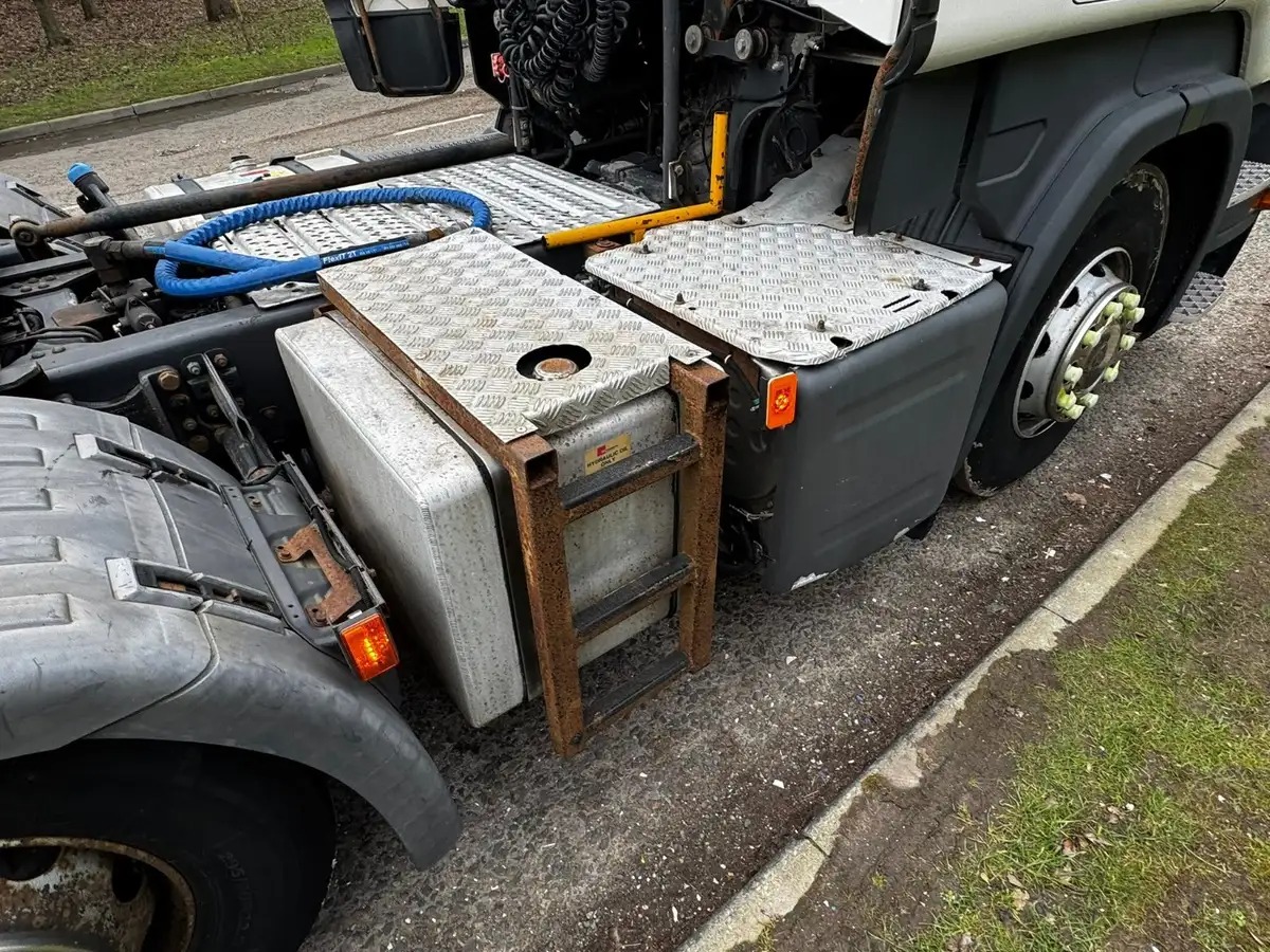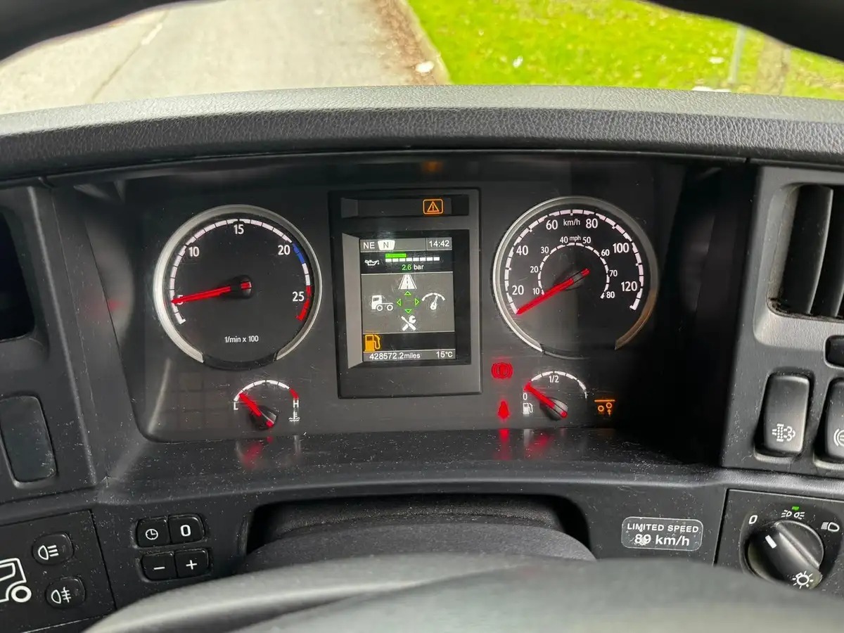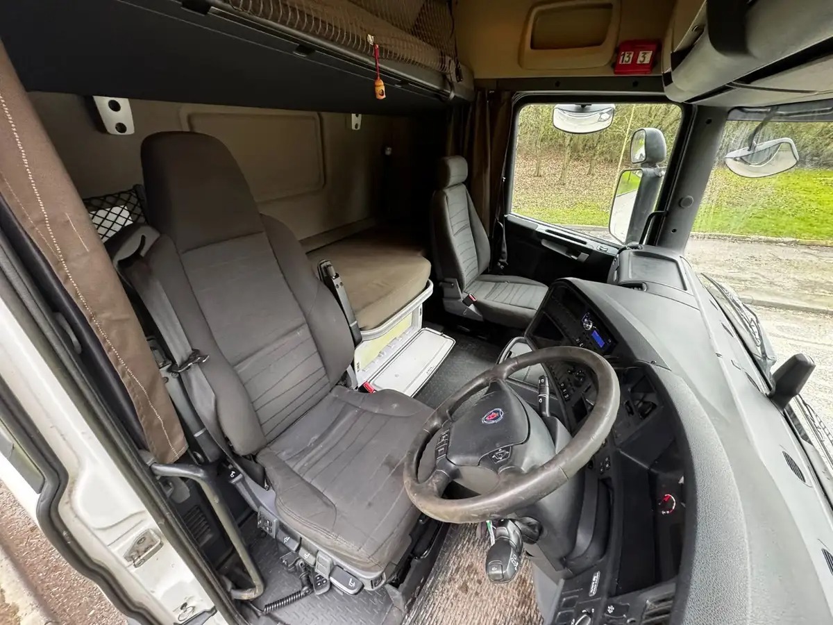 This 2015 Scania R450 6×2 mid-lift twin steer tractor unit offers a strong combination of power, efficiency and long-haul comfort. Equipped with a 2-pedal automatic gearbox, non-EGR engine with small turbo, AdBlue system and engine brake, it is configured for both performance and economy. This unit features a single line PTO with twin diesel pipes, side-mounted batteries and side camera for added operational practicality and safety.