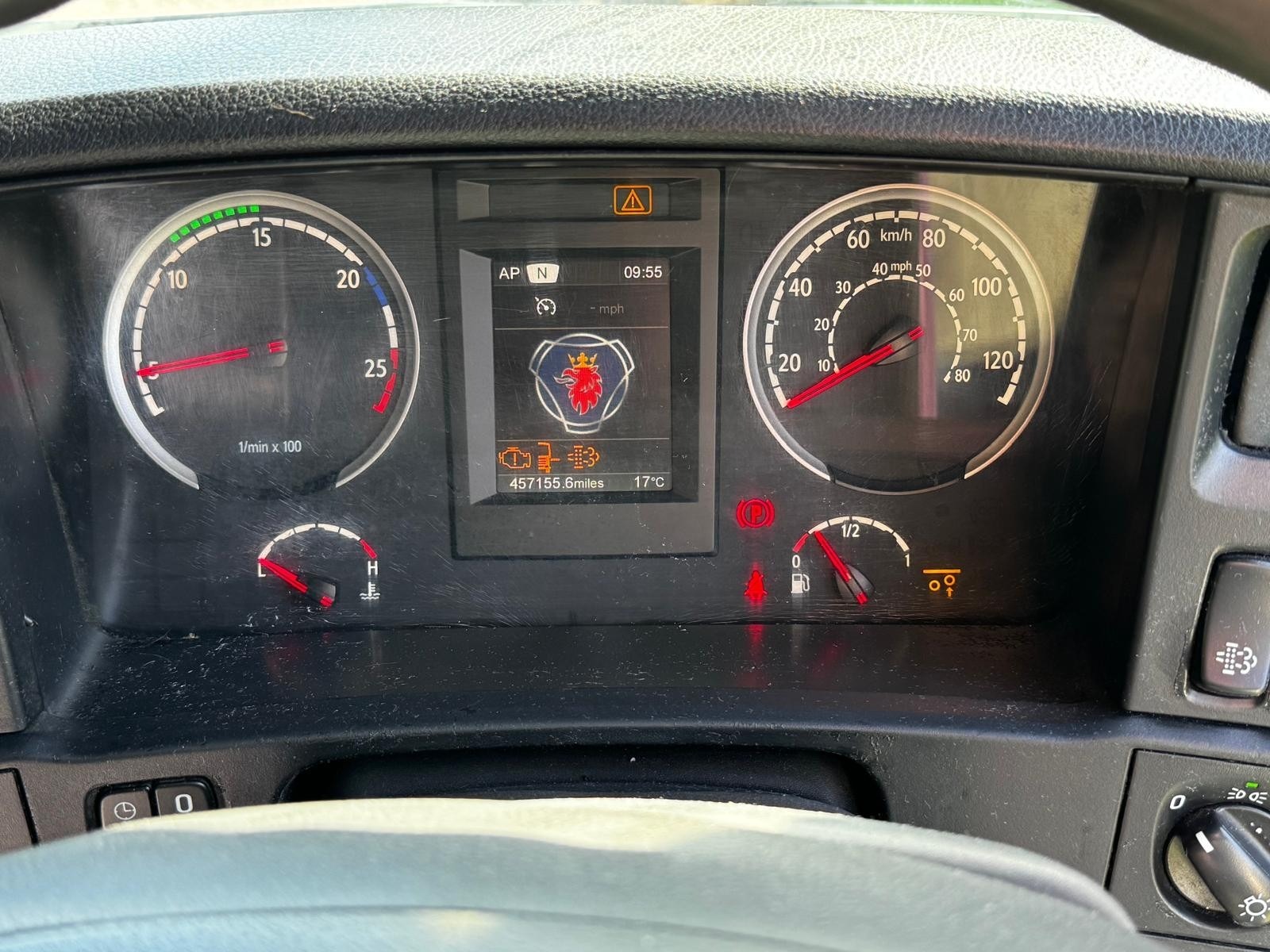 This robust 2018 Scania R450 tractor unit features a 6×2 configuration with rear lift axle for optimal maneuverability and load handling, paired with a smooth 2-pedal auto gearbox and twin PTO prep for versatile applications. It boasts a non-EGR engine with small turbo, add blue system, diesel pipe setup, and powerful engine brake, ensuring reliable performance and efficiency. With 457,155 miles and full logbook present, this direct-from-work unit is ready for immediate deployment.