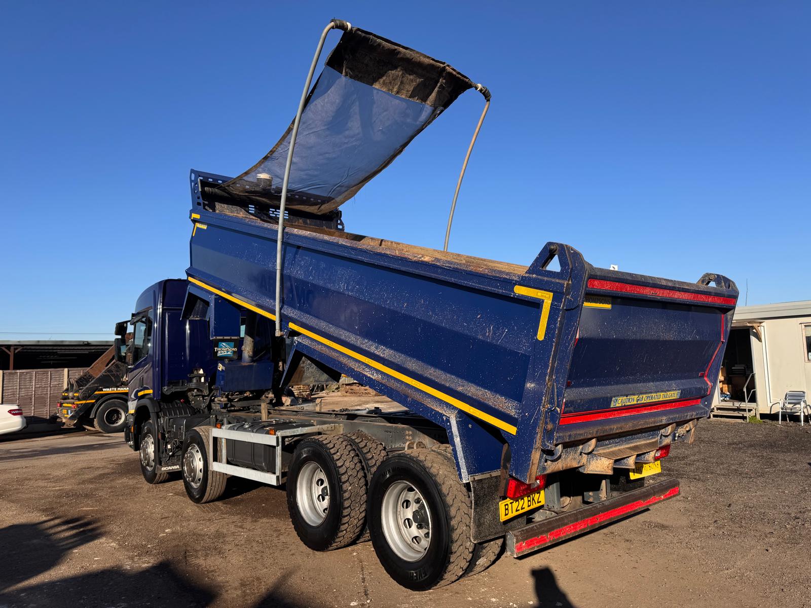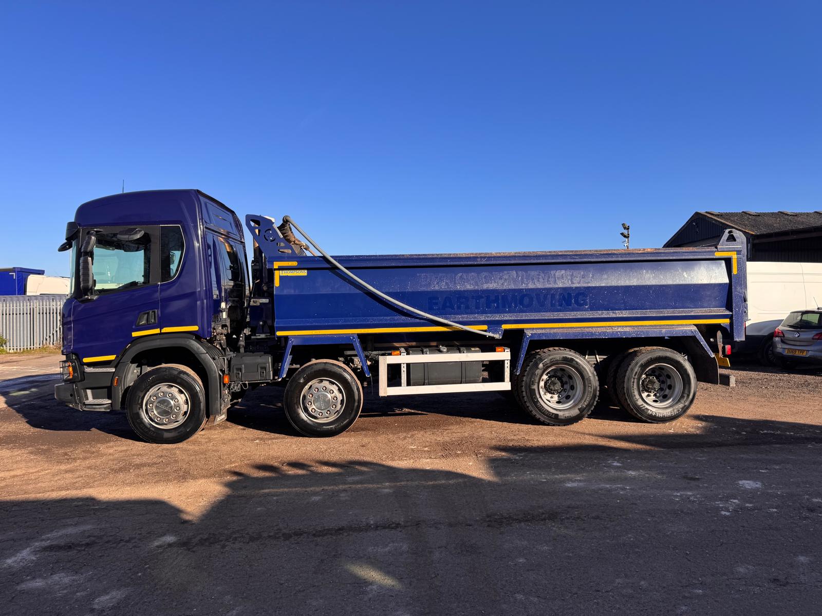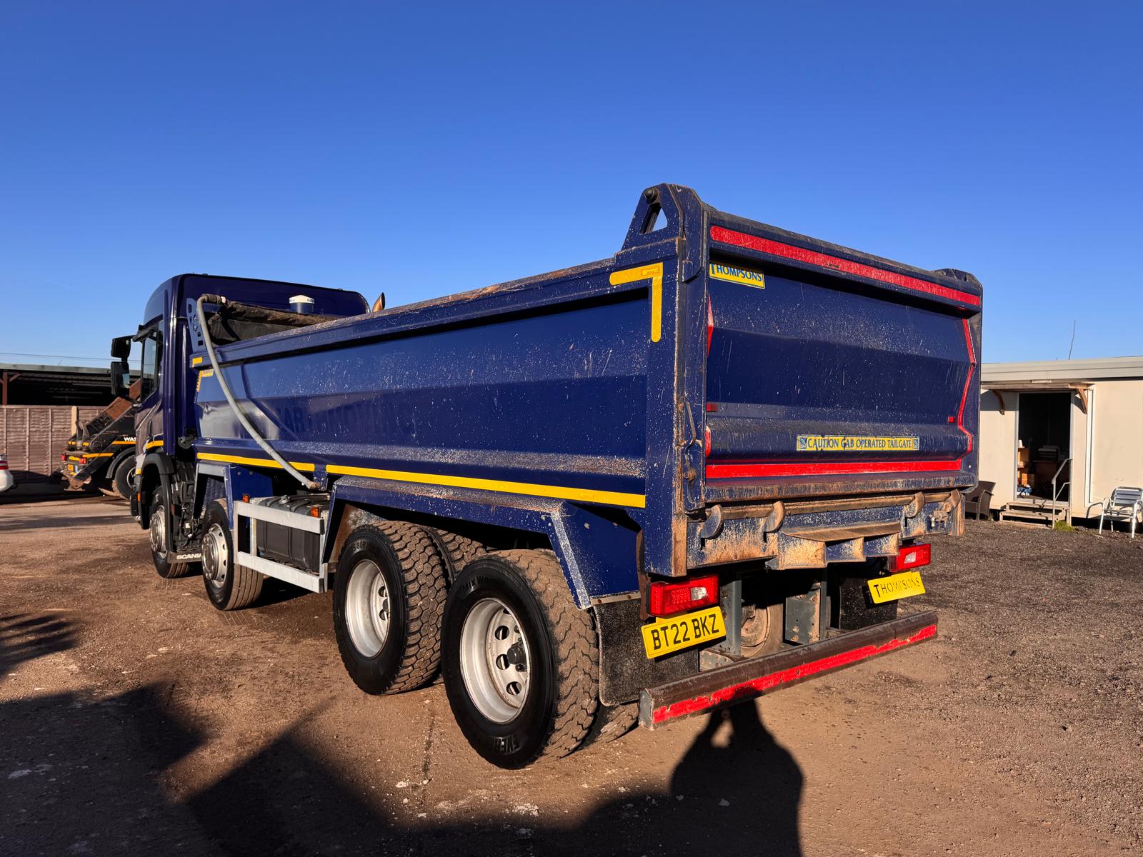 2022 SCANIA P410XT TIPPER, 8X4, 300,000KMS, 2 PEDAL AUTOMATIC, THOMPSONS BODY, WEIGHER, AUTO TAILGATE, EASY SHEET, AUGUST 2026 MOT, REVERSING CAMERA, RETARDER, CRUISE CONTROL, DIFF LOCKS, LED BEACONS, CLIMATE CONTROL, DAB RADIO, GOOD TYRES, VERY GOOD SPEC READY FOR WORK