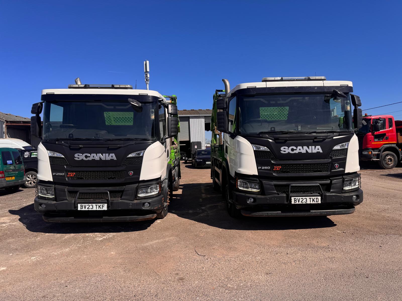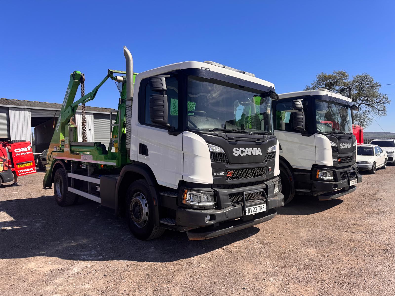 2023 SCANIA P250XT SKIP LOADER, 150,000KMS, MOT MARCH 2027, HYVA SKIP GEAR, EASY SHEET, 2 PEDAL AUTO GEARBOX, LED WORKLIGHTS, LED BEACONS, REVERSING CAMERA, BLUETOOTH RADIO, A/C, CRUISE CONTROL, RETARDER, HILL ASSIST, VERY TIDY 1 OWNER TRUCK